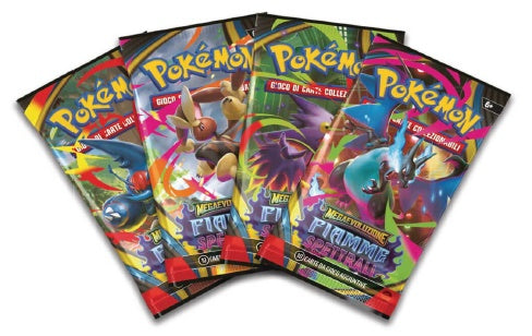 L'espansione Megaevoluzione - Fiamme Spettrali del GCC Pokémon contiene oltre 120 carte. Ogni busta dell'espansione Megaevoluzione - Fiamme Spettrali del GCC Pokémon contiene 10 carte, un'Energia base e una carta codice per il GCC Pokémon Live.