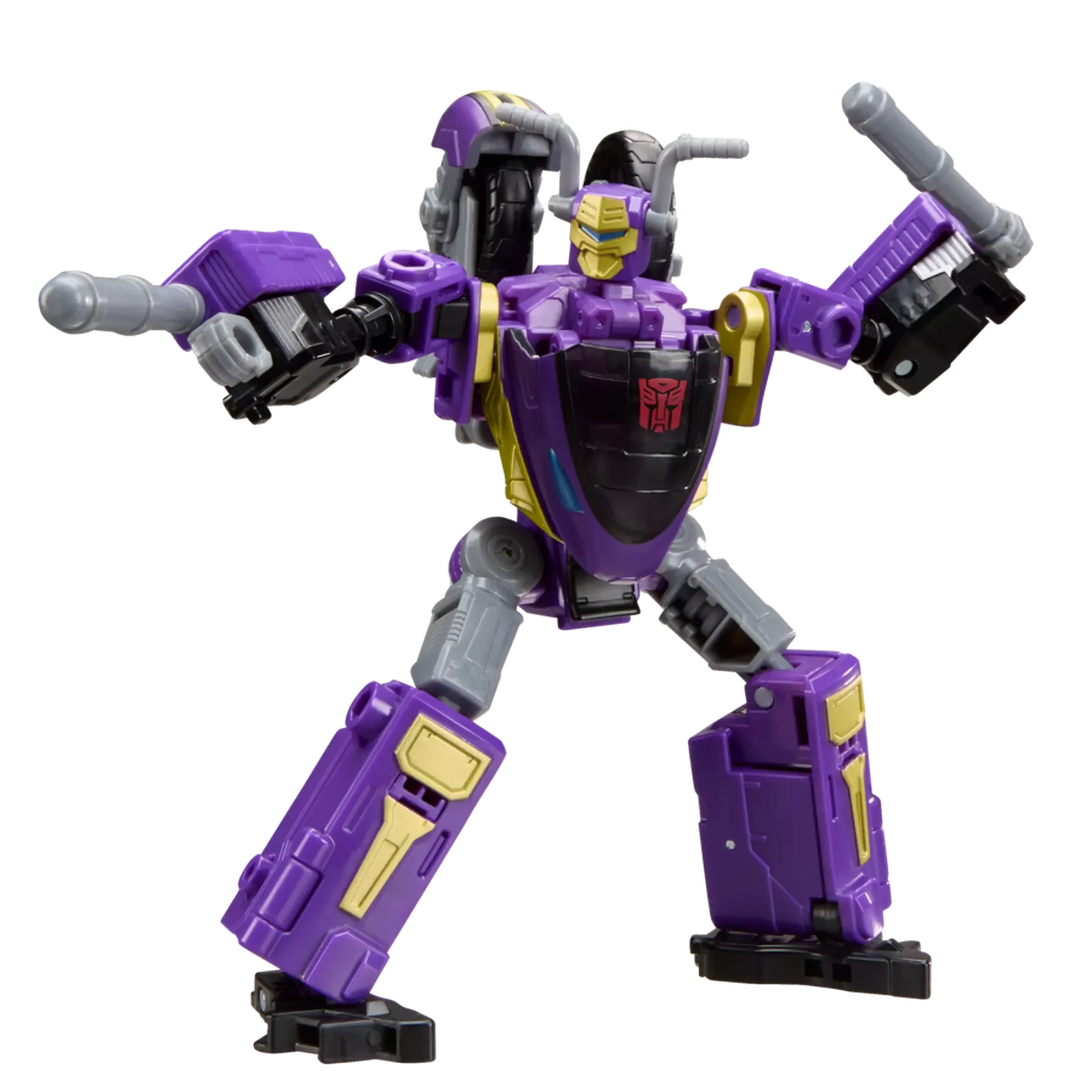 The 5.75-inch (14.5 cm) Voyager Class figure converts from robot action figure to motorcycle mode in 23 steps, and comes with 2 Mini-Con figures that combine to create Mini-Con Combiner Mirror, who can ride in motorcycle mode.