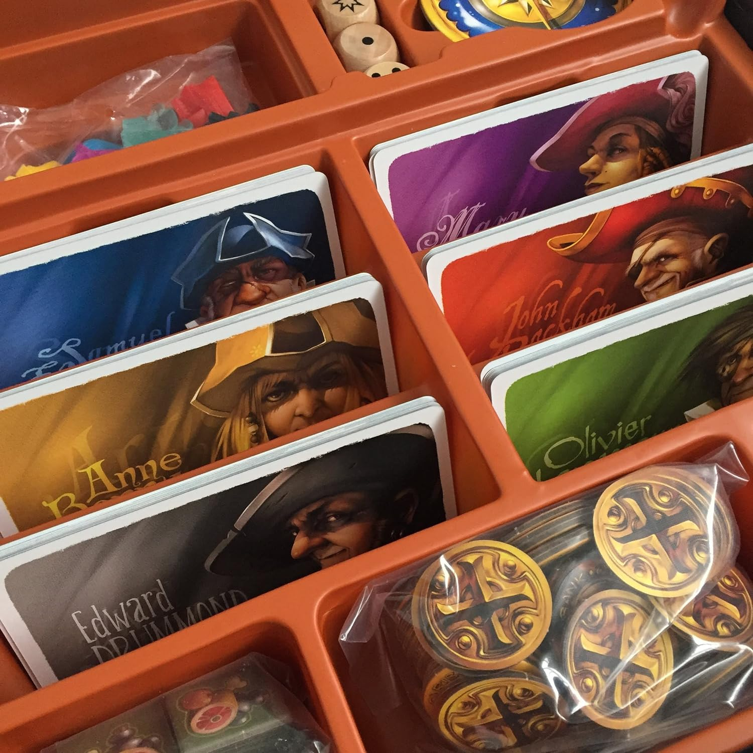 Si tratta essenzialmente di compiere un intero giro intorno all’isola della Giamaica coordinando sapientemente il risultato del lancio dei dadi con le proprie carte azione; ogni giocatore dispone di una stiva con 5 settori dove poter immagazzinare dobloni, cibo e cannoni che utilizzerà di volta in volta per avanzare con la propria nave o per fronteggiare gli avversari.
