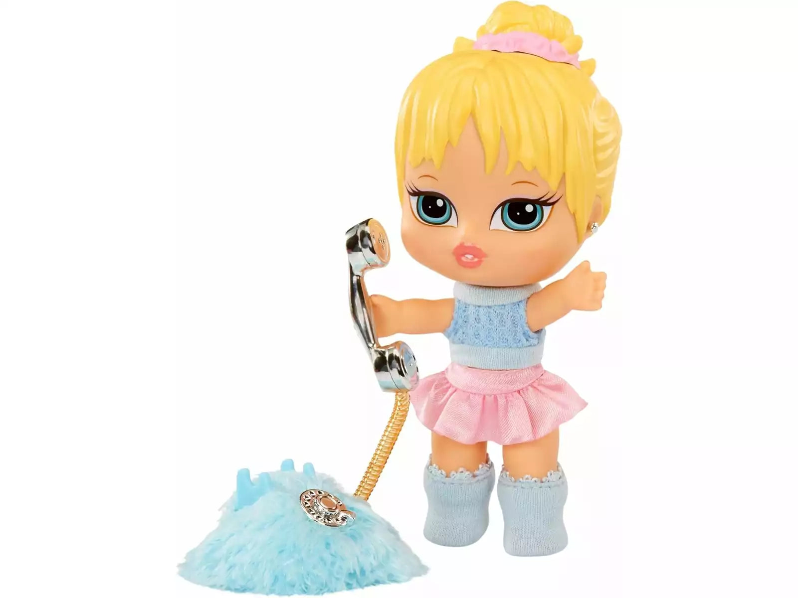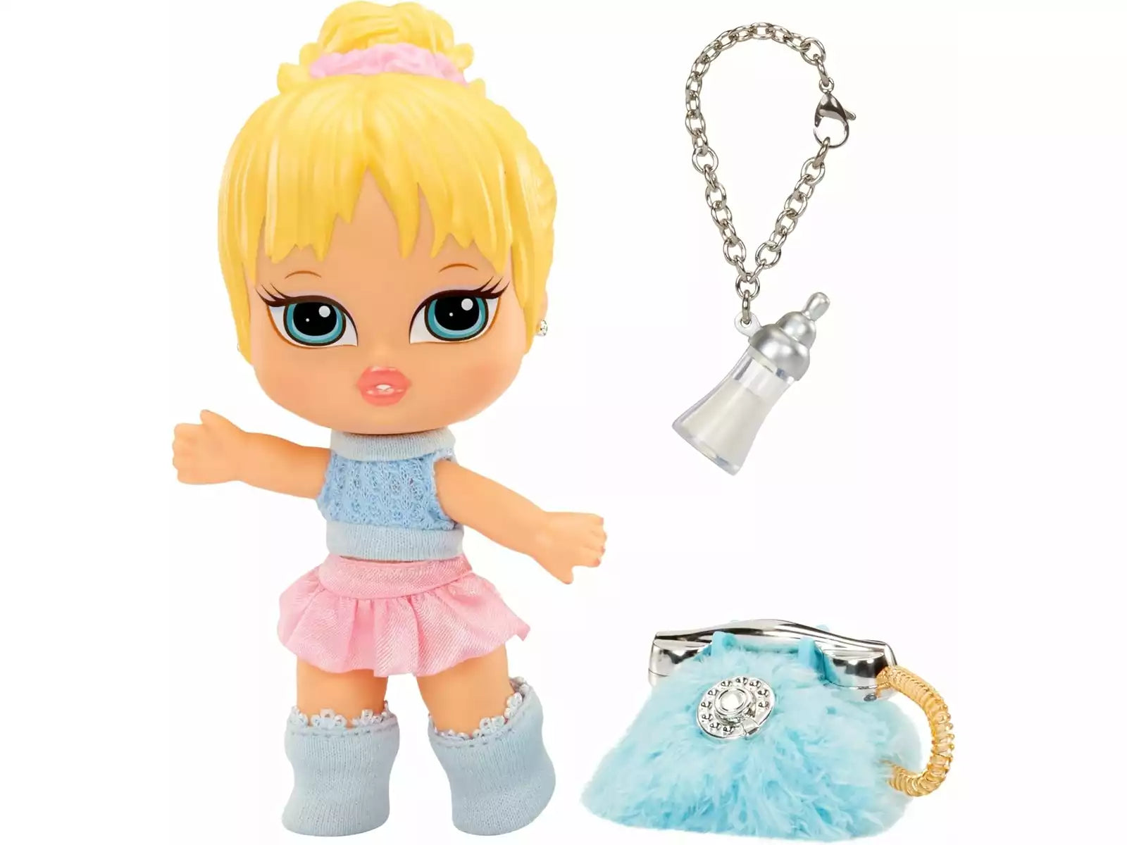 Prendi questa nuova mini bambola delle Bratz più speciali, che fanno tendenza fin dalla culla con uno stile divertente e colorato. Insieme alla bambola c'è un telefono con un disegno abbinato e il suo biberon preferito, che porta sempre con sé appeso al collo.