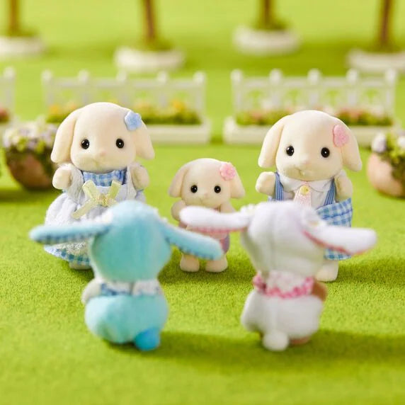 Unisciti a Pearl Pinguino e Ambrose Scoiattolo della Noce nel più entusiasta benvenuto alla Famiglia Coniglio Flora. Con costumi a orecchie cadenti presentano il loro omaggio ai nuovi vicini del Villaggio Sylvanian. Un costume perfetto per accogliere anche la primavera a Sylvanian Land. Un piano fantastico a cui siete più che invitati! Il set include due figure di bebè con abiti esclusivi di questo set. Figure e mobili sono venduti separatamente. Età consigliata: +3 anni.