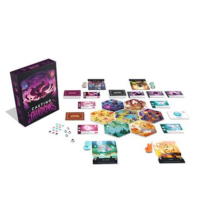 Contenuto: 76 carte, 5 dadi Risorsa, 7 tessere esagono, 13 segnalini Risorsa, 4 plance giocatore a due lati, 4 pedine, 1 scheda tessere esagono, 1 regolamento.