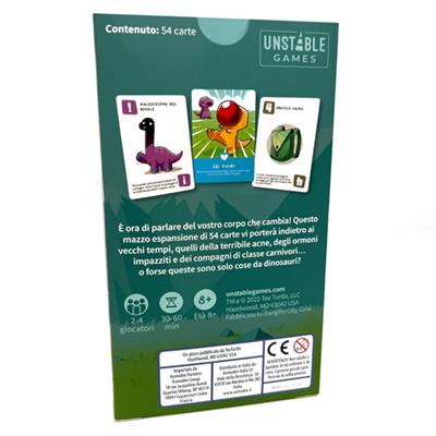È ora di parlare del vostro corpo che cambia! Questo mazzo espansione di 54 carte vi porterà indietro ai vecchi tempi, quelli della terribile acne, degli ormoni impazziti e dei compagni di classe carnivori… o forse queste sono solo cose da dinosauri?