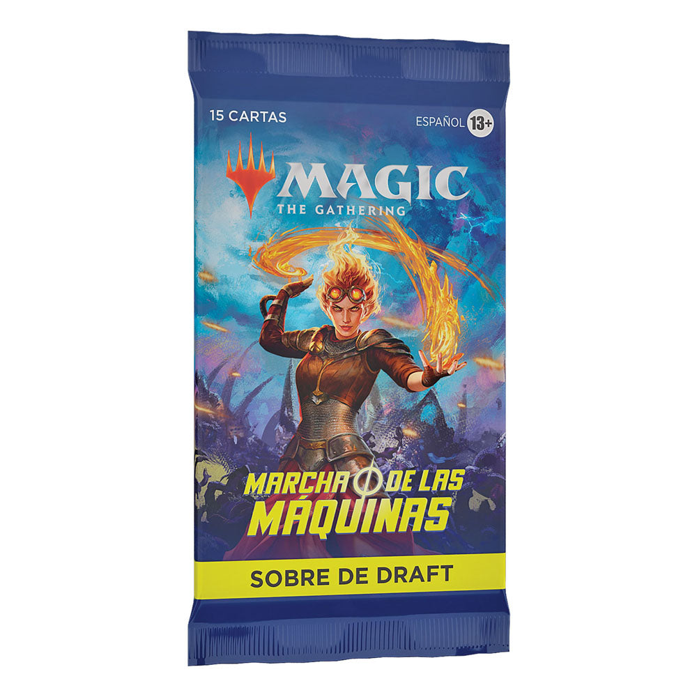 The March of the Machine Draft Booster Box contains 36 March of the Machine Draft Boosters. Each Draft Booster contains 15 cards and 1 token/ad card or Helper card, including 1-2 card(s) of rarity Rare or higher and 3-5 Uncommon, 8-9 Common, and 1 Land cards. Traditional Foil Borderless Mythic Planeswalker in <1% of boosters. Traditional Foil of any rarity replaces a Common in 33% of boosters.