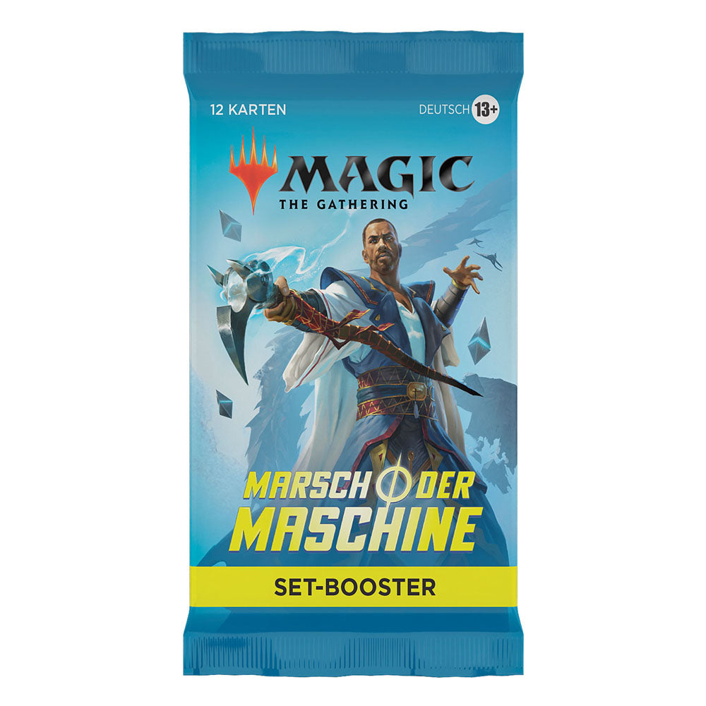 The March of the Machine Set Booster Box contains 30 March of the Machine Set Boosters. Each Set Booster contains 12 Magic cards, 1 Art Card, and 1 token/ad card, Helper card, or card from "The List" (a special card from Magic's history-found in 25% of packs).