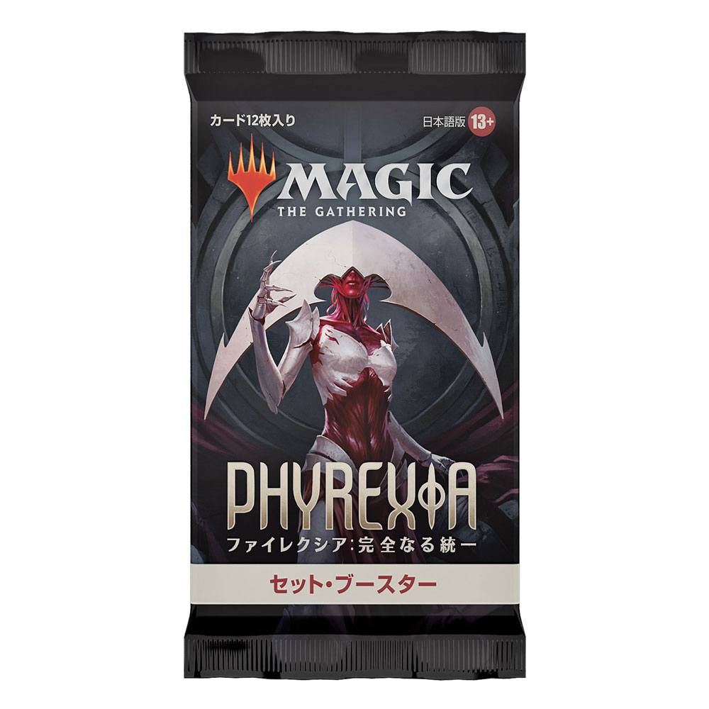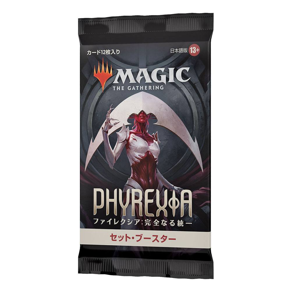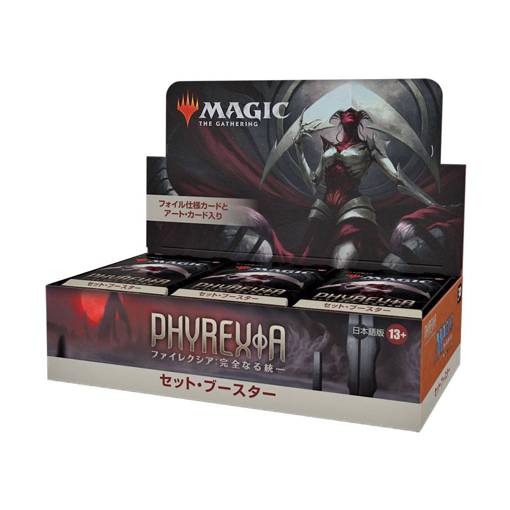 The Phyrexia: All Will Be One Set Booster Box contains 30 Phyrexia: All Will Be One Set Boosters. Each Set Booster contains 12 Magic cards, 1 Art Card, and 1 token/ad card or card from "The List" (a special card from Magic's history or Universes Within card-found in 25% of packs).