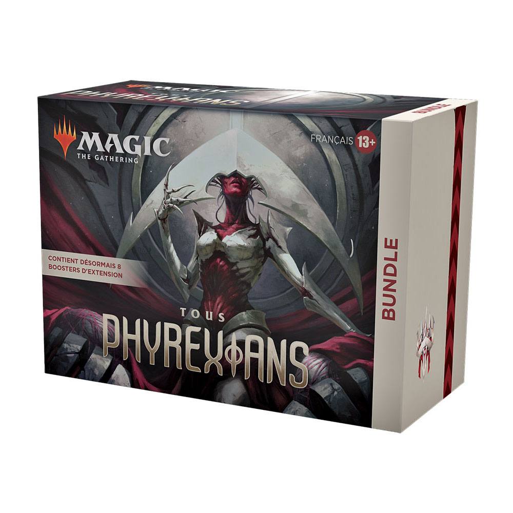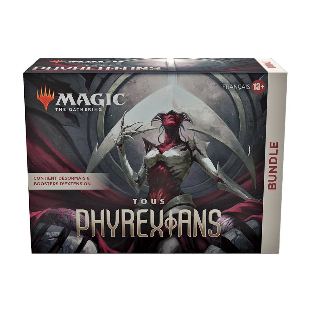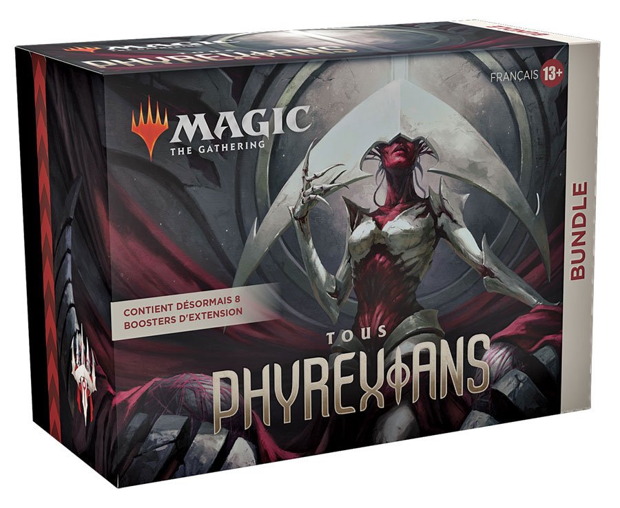 The Phyrexia: All Will Be One Bundle contains 8 Phyrexia: All Will Be One Set Boosters-the best boosters to open just for fun-plus accessories, with 1 traditional foil alternate-art promo card, 40 basic lands (20 traditional foils and 20 nonfoils), 1 oversized Spindown life counter, 1 card storage box, and 2 reference cards.