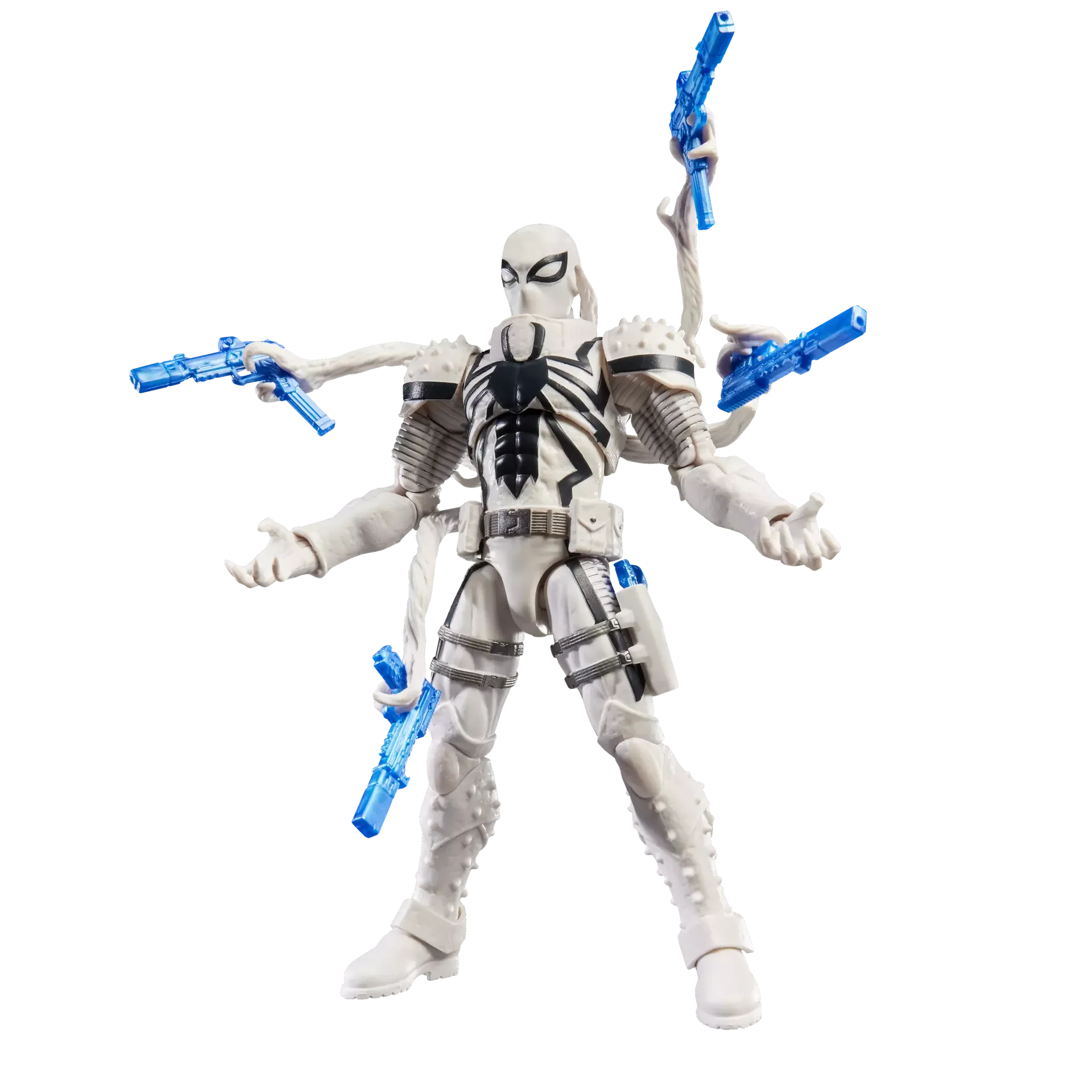 Detailed to look like the character’s appearance in Marvel’s Spider-Man comics this collectible 15-cm-scale Agent Anti-Venom figure is fully articulated with poseable head, arms and legs. This Marvel action figure set comes with 14 accessories, including alternative unmasked head, 2 thwip hands, 2 wall-crawling hands, web line and web shield; plus an exclusive foil Magic: The Gathering | Marvel's Spider-Man card to expand your spider-collection! Hasbro Marvel action figures' 15-cm scale make them great for posing and displaying in fans' collections. Reimagine Spider-Man comics-inspired scenes on your shelf with Marvel Legends action figures.