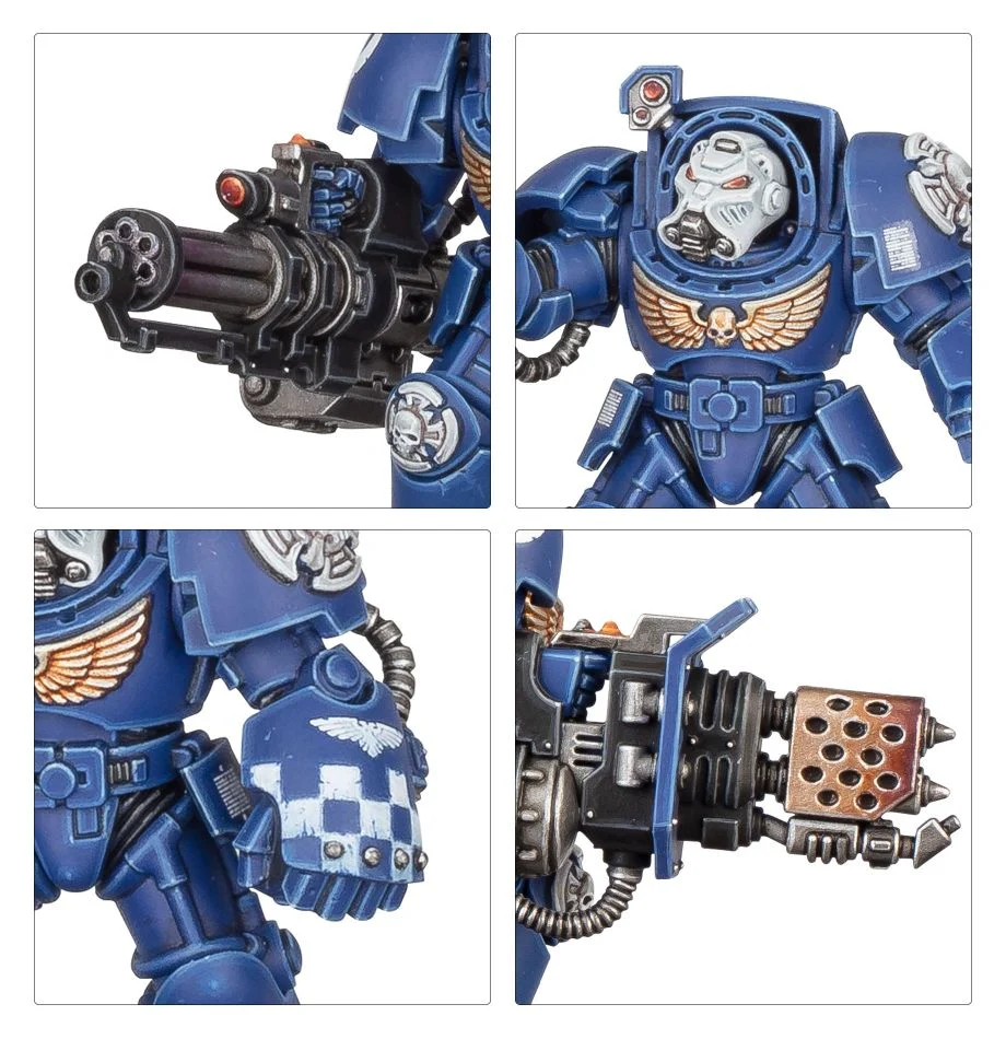 Questo kit contiene 140 componenti di plastica, 5x basette Citadel rotonde da 40mm, 1x basetta Citadel rotonda da 25mm e un foglio di trasferibili per la fanteria degli Space Marines. Queste miniature devono essere assemblate e dipinte.