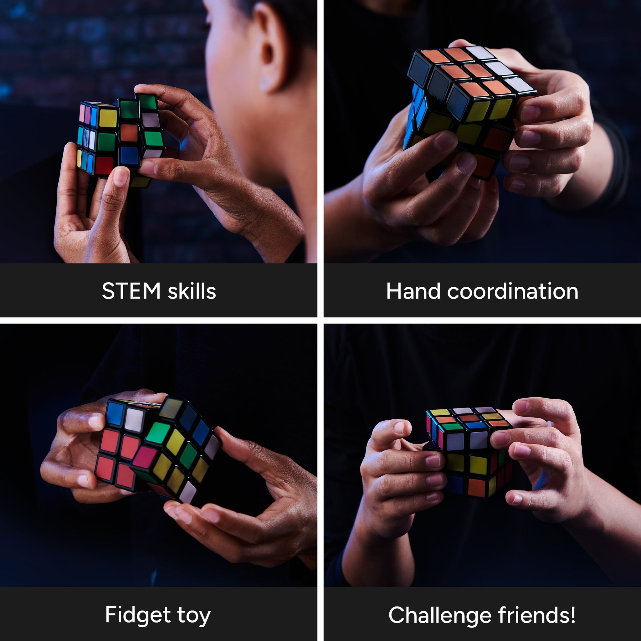 Touch, reveal, and solve with the Rubik’s Phantom. Innovation adds a new layer of challenge to the original 3x3 Cube. Touch the Cube tiles to temporarily reveal color. Solve the latest Cube, the Rubik’s Phantom, as the colors fade. You will be amazed by the thermochromic technology of this Cube. Reveal the Phantom’s colors with the heat of your touch. Solve the cube before it fades back to black! This smart Cube is unlike any toy you have ever played with before. The Rubik’s Phantom is a difficult challenge level, meant for experienced Cubers. This brain teaser puzzle Cube is one of the most challenging to solve of the Rubik’s collection. Puzzle-loving adults and kids ages 8 and up will love this anxiety relief puzzle speed Cube. Invented in 1974 by Ernő Rubik, the original color-matching puzzle toy- the Rubik’s Cube- was created to help students understand three-dimensional problems. The prototype Magic Cube did things that the world had not seen before. It turned, it twisted and yet it did not break. Adding 54 colorful stickers to the six sides gave the puzzle its iconic look. Over 40 years of history has led the Rubik’s Cube to become one of the best-selling toys ever. With the new Rubik’s Phantom- you can become the puzzle Cube master of your house with thermochromic technology. Show your peers that you can accomplish something new with this toy! This smart speed Cube 3x3 makes the perfect gift idea for people of all ages or a stocking stuffer for anyone who loves a challenge. Share your Rubik’s Phantom solving skills with us on our social channels using #RubiksCube