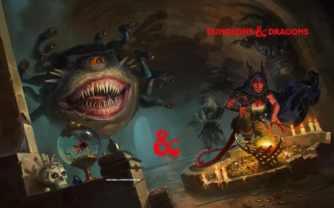 La confezione è impreziosita da un’illustrazione esclusiva realizzata da Katerina Ladon, che ritrae Xanathar, uno dei più iconici e temuti signori del crimine dei Forgotten Realms. Il celebre beholder domina la scena dal suo antro sotterraneo, circondato da ricchezze, reliquie arcane e simboli del suo potere, mentre un gruppo di avventurieri si muove nell’ombra, sospeso tra audacia, pericolo e scoperta.