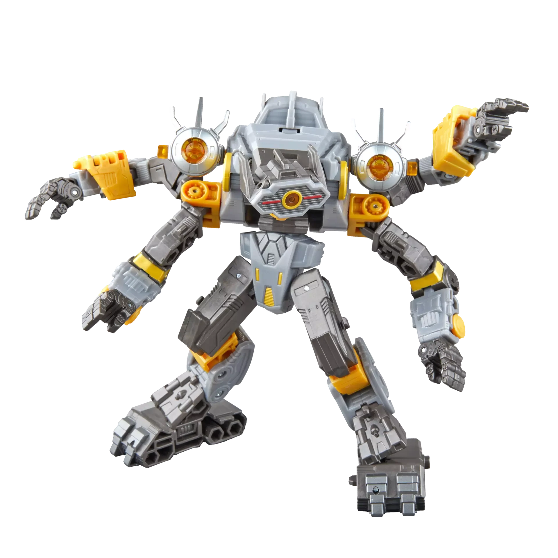 L'action figure Voyager Class da 14 cm si converte dalla modalità robot alla modalità carro armato aracnoideo in 21 passaggi e può essere smontata per ricavare una varietà di veicoli e armi più piccoli.